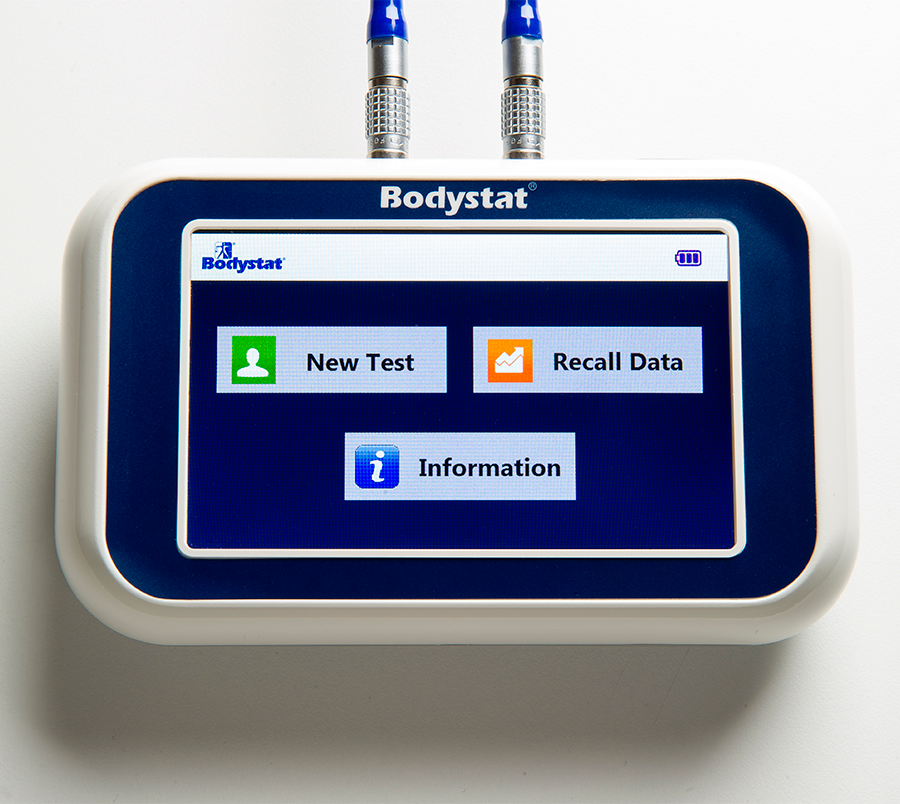 Unidad de monitorización corporal a través de impedancia a una frecuencia de 50 kHz, con pantalla táctil de bolsillo que mide datos de impedancia, resistencia, resistencia reactiva y ángulo de fase. Marca Bodystat.